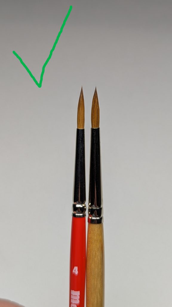 currency) for what you are getting so you don’t need to worry about “messing up” your fancy brush while you’re learning a new technique. If you have a brand you prefer to try instead, knock yourself out. What you are essentially looking for is something with a sharp point and a large belly (insert average wargamer joke here.) You