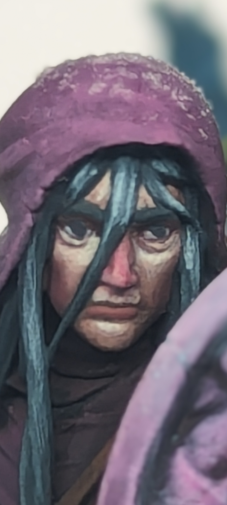 An example of one face I painted recently, the Echoes of Death Thief from Kingdom Death Monster.
