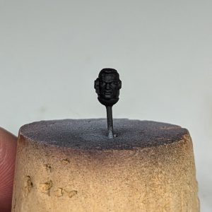 Then, using whatever dark color you like (black is fine for this), dot the eyes. Try you best to make them point in the same direction. If you want a neutral, “looking forward” face, try to have the pupil touching both eyelids. I wouldn’t stress too much about the shape of the iris and pupil on a 28mm model, just do your best to make them even and looking the same direction. Not much more to it than that, with the same caveat that you might need to try a couple times to get it right. Them’s the brakes, not really much to say there.