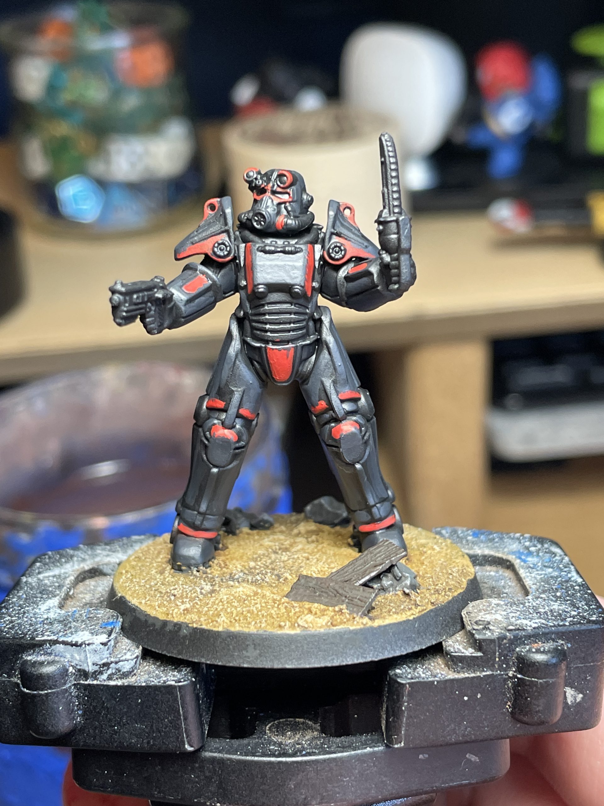 I tend to treat Fallout models like historicals - I find the uniforms and materials I plan to paint beforehand, then adapt them as closely as I can. Genuinely,