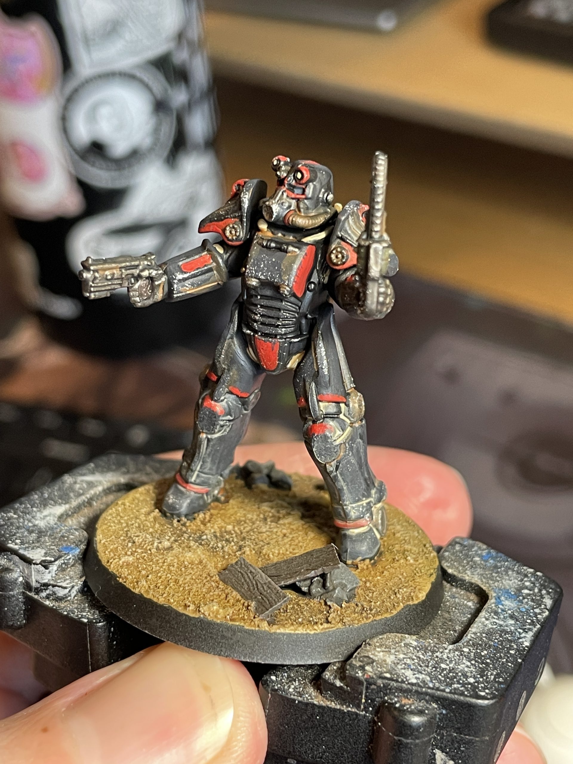 nobody else should care how you paint your models, but I like aiming for game accuracy in my own work. This starts with a trip to the Fallout wiki, namely the page for the