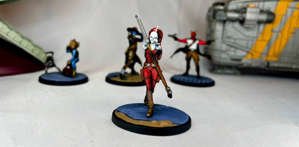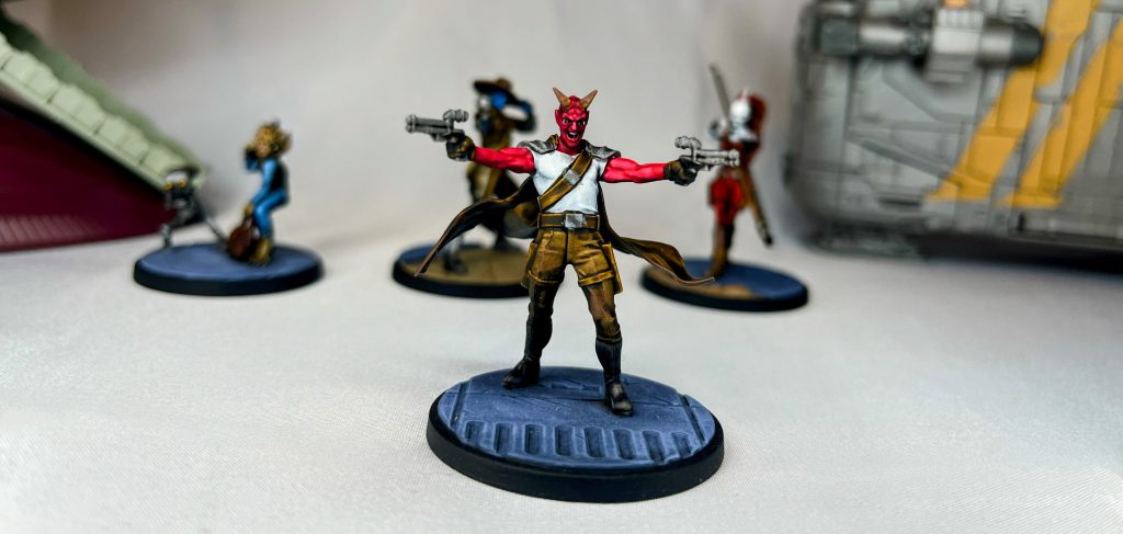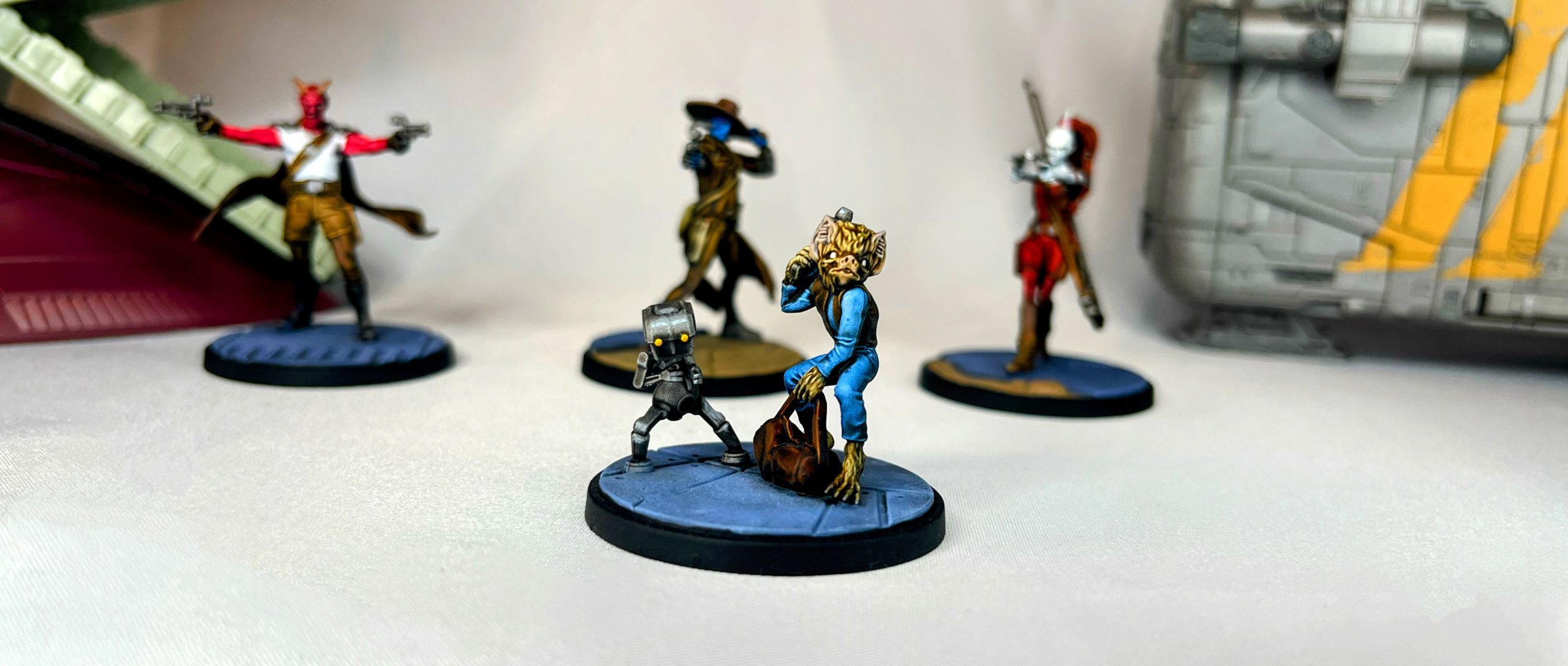 Fistful of Credits was a pleasure to build and to paint. Every character has a unique and vibrant color scheme, backstory, and pose. Lush red and deep blues give color and life to the battlefield in this all alien squad. I hope these sculpts become the standard moving forward for Shatterpoint miniatures.