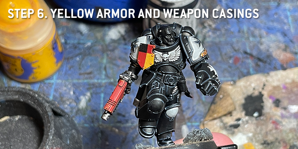 Consider this an alternate step. I use yellow often with my heraldry and weapon casings, so if you want to follow my lead I’ll tell you how. I like to do this for all my heavy weapons, often with some flames or hazard stripes for funsies.