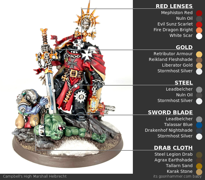 - Layer: 1:1:1 mix of Khorne Red, Mephiston Red, and Evil Sunz Scarlet