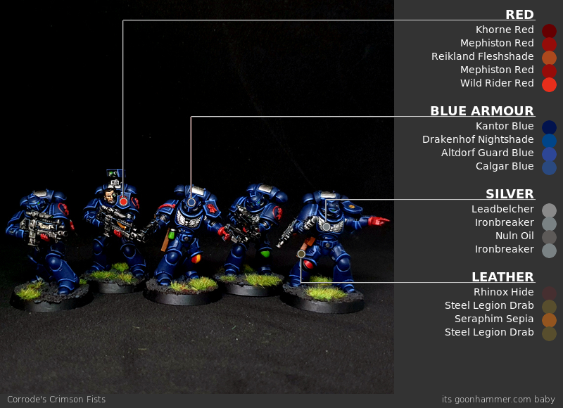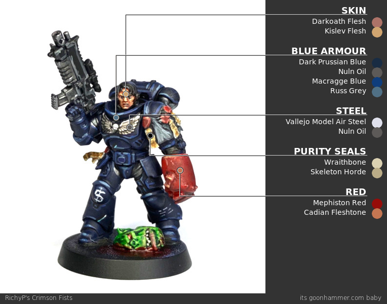 There's probably some cleanup to do after the initial basecoat, but this typically gets you into a "he looks like a Crimson Fist!" spot.