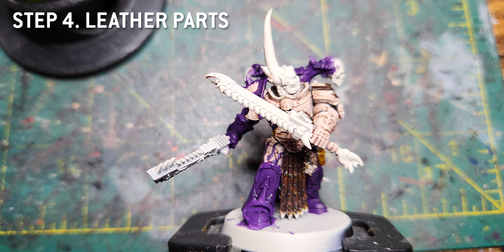 Next up come the leather parts. Snakebite doesn't really jibe here so I went with a much darker leather instead, using