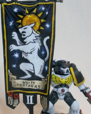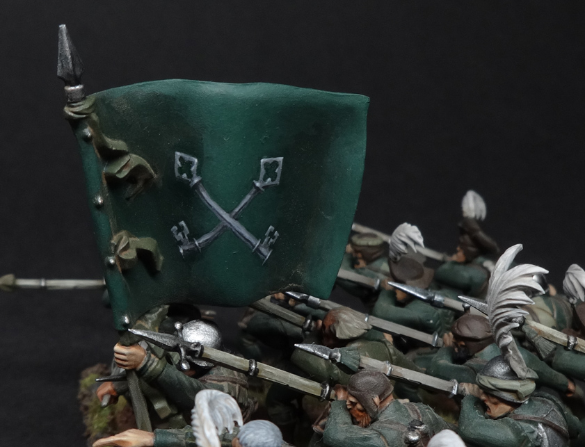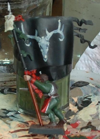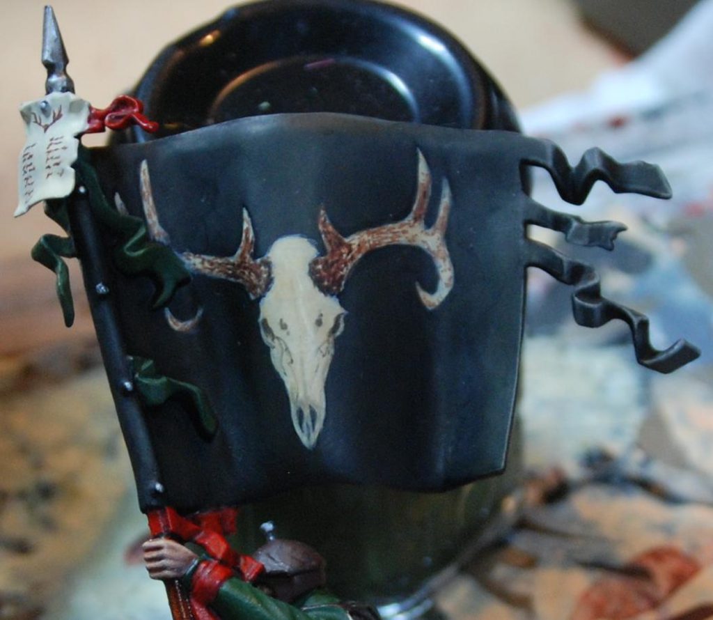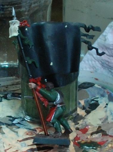 I have a simpler example below, again from my Empire army’s many flags, so that you can see what I mean about having a light source (in this case from above):