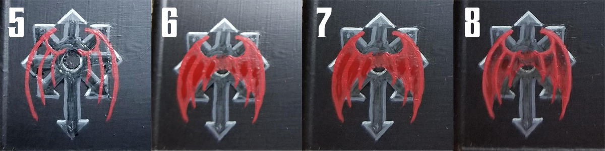 I don’t usually use non-metallic metals as I prefer the look of metal paints for metal, particularly on gaming pieces. When you’re freehanding metallic details, though, it’s basically mandatory since you’re representing an area of paint/cloth/whatever. Assuming you’ve decided on the light source (see the tip above), everything follows on from that. Again, find some reference if you can, since light and shadow works very, very weirdly on metal. There are plenty of NMM tutorials out there which will tell you which colours to use, and the article I linked earlier by Richard Gray is an exquisite example of someone doing this like a boss.