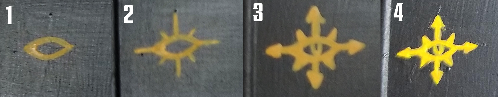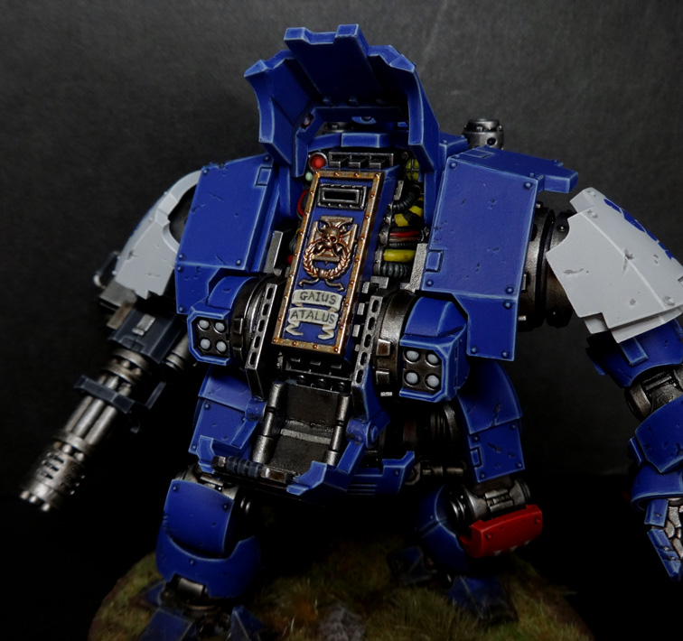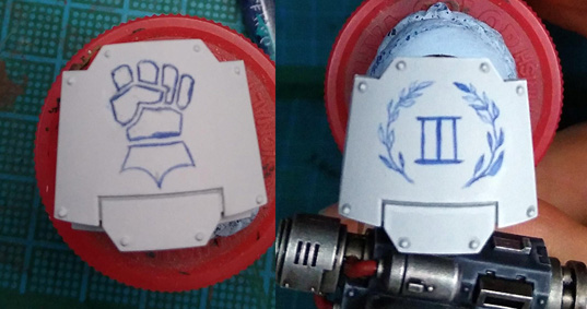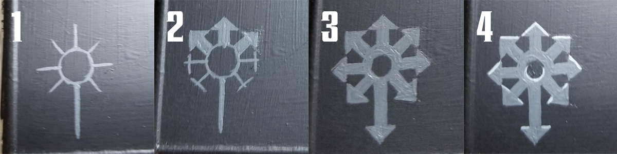 When painting a miniature, your job is to exaggerate the shape of the thing so that it makes visual sense when it’s about two feet away, sitting on a table and looking pretty. This is often achieved by edge highlighting and by zenithal shading (meaning that you paint the miniature as if lit from above, because most of the time, it will be lit from above). This increases the contrast and makes your miniature pop. Since freehand is, you know, flat, you’re going to have to decide where the light source in the image is. This is particularly true if you are depicting any reflective surfaces. This also helps you figure out where you should shade, and where you should highlight.