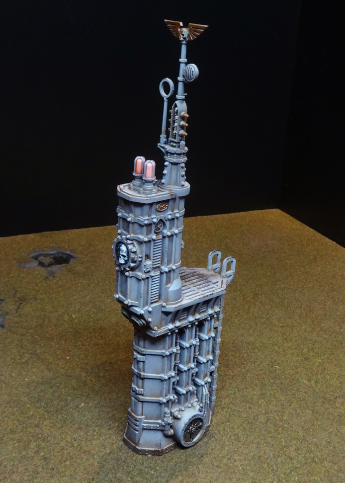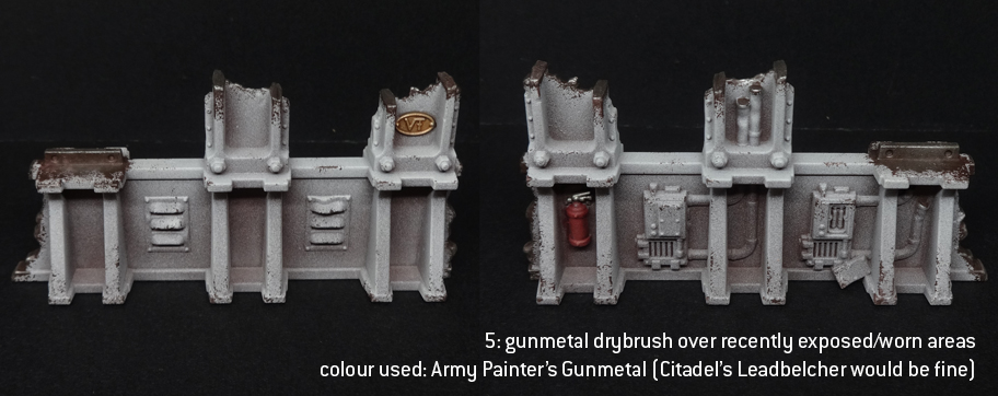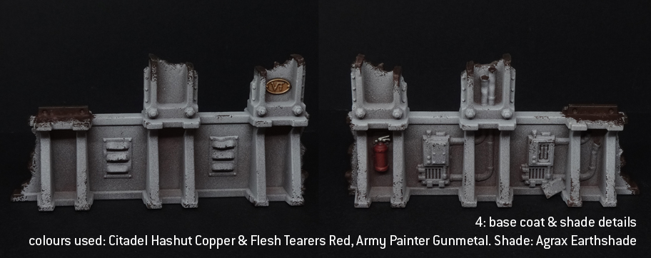 A few details, like extractor fans, were done in bare metal. A basecoat of a darkish silver like Citadel Leadbelcher or Army Painter Gunmetal will do fine here, followed by a wash of Agrax Earthshade, then a final wash of Nuln Oil. That should give it an oily feel without going for hardcore rust. These things are intact, functional buildings - at least, that's how I've painted them.