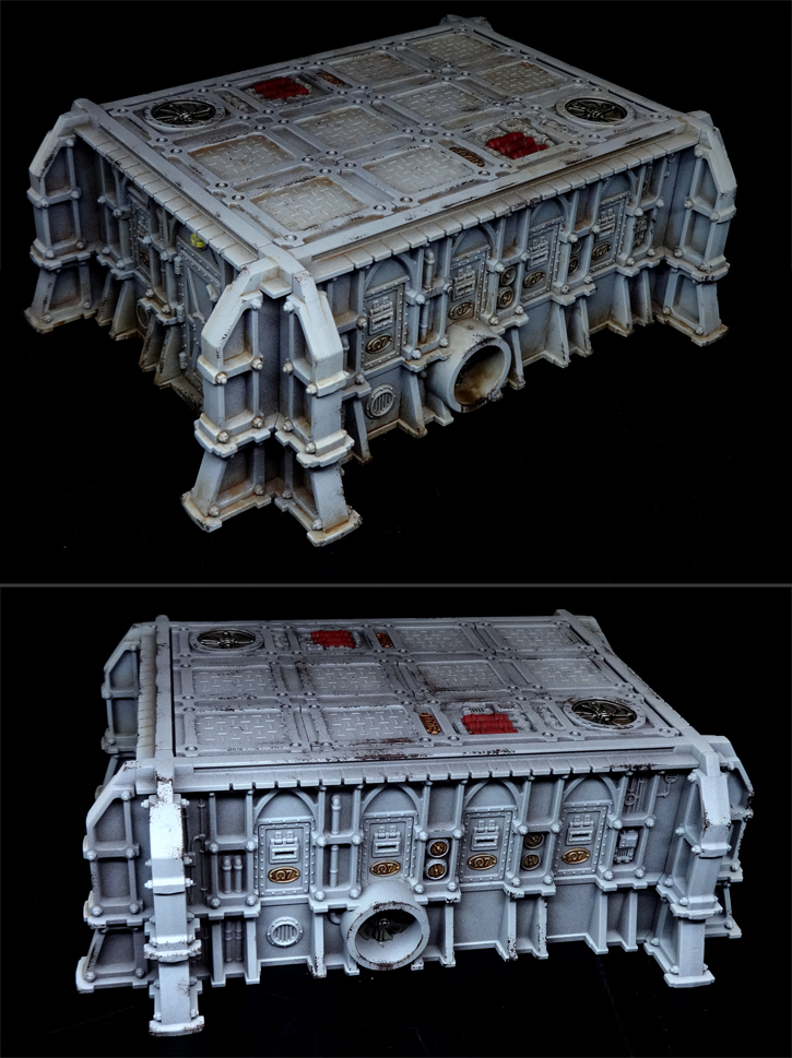 (As a brief aside, I should probably explain those quotation marks. The thing is, landing pads are a total bastard to produce as a miniature kit, because a real one would be large enough to actually land on and would also be, well, at ground level. Mostly to reduce crashes and make it practical to load cargo. So... basically a bit of flooring with no impact in-game. Fortunately, this piece of terrain also totally works as an underground bunker entrance, a supply depot, a fuel depot, and even a missile silo. Fantastic bit of terrain.)
