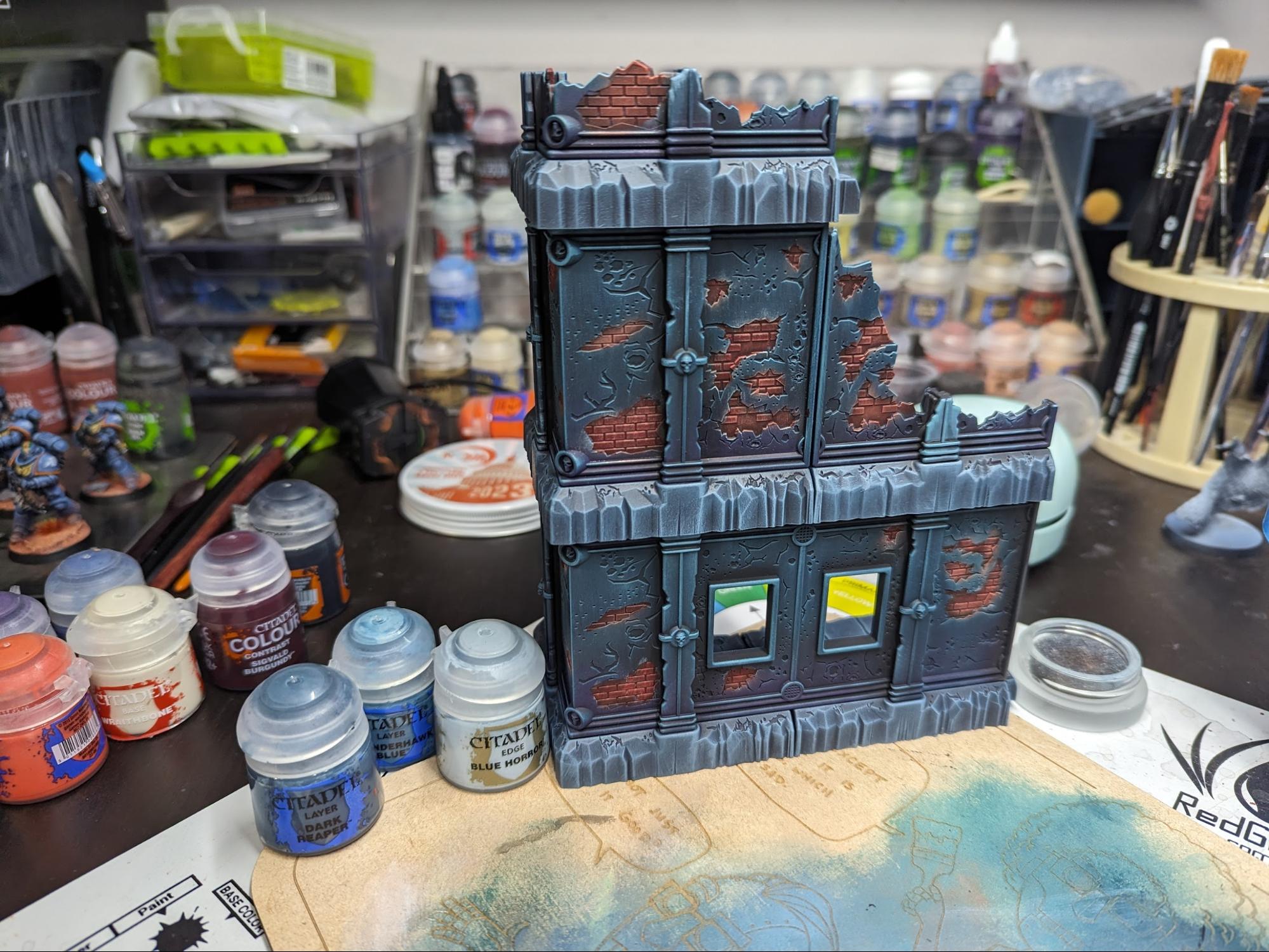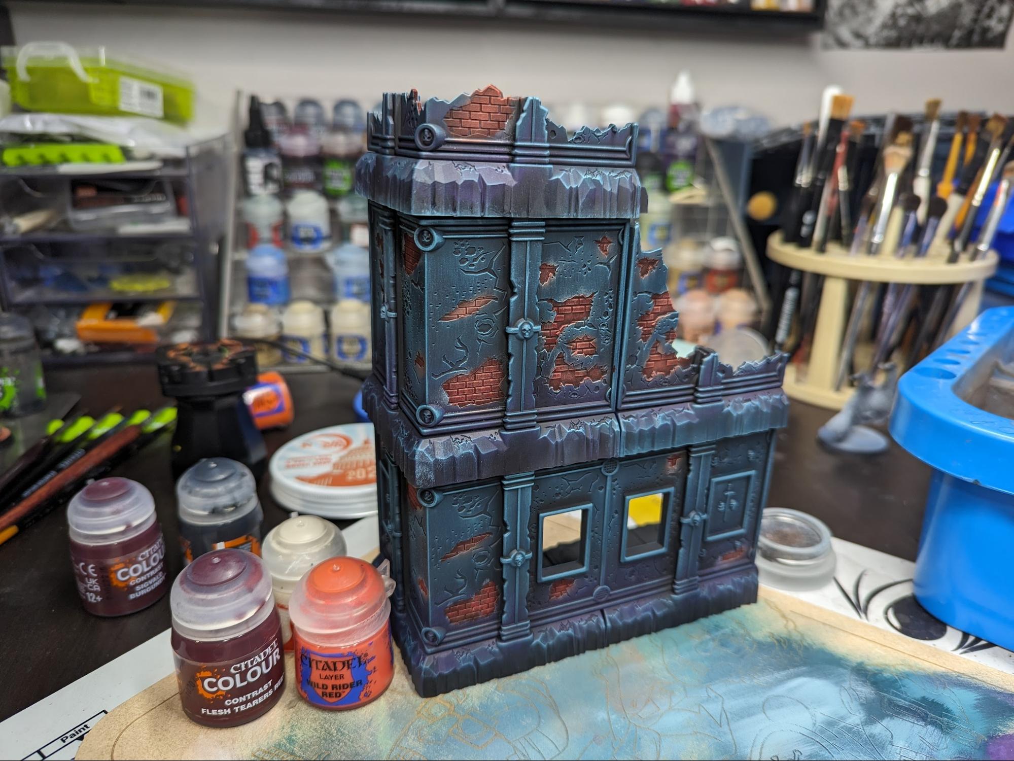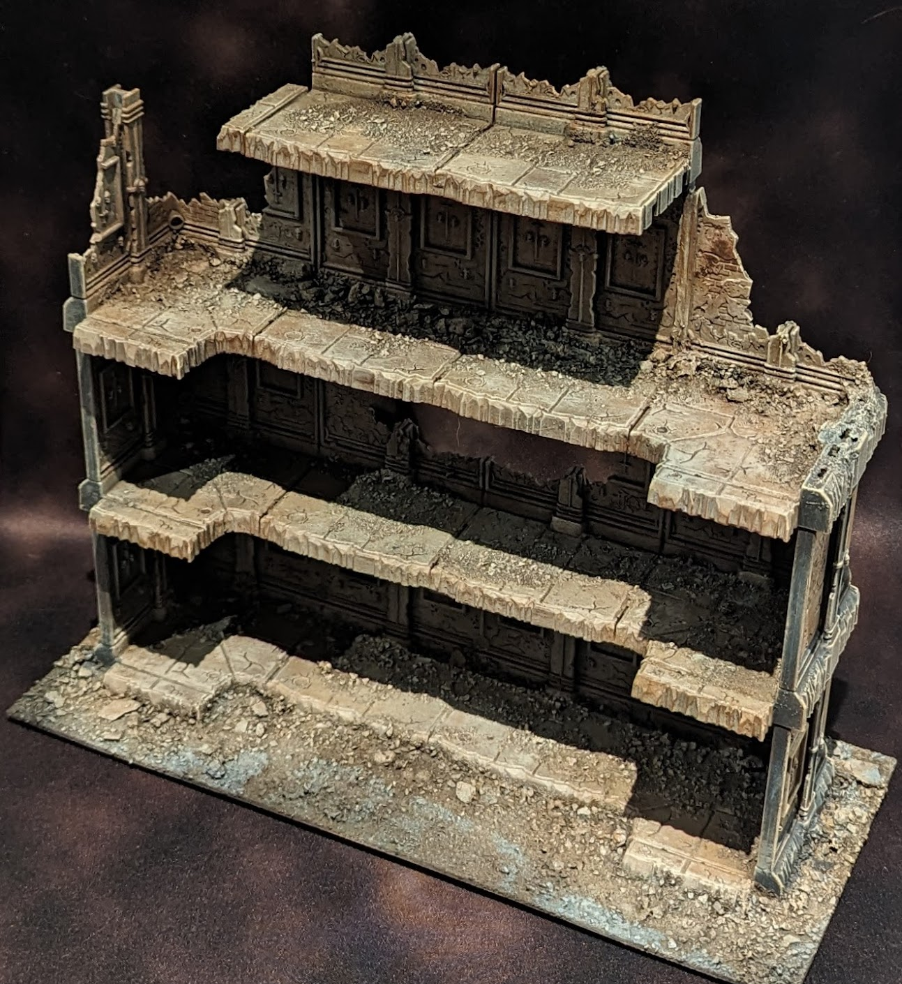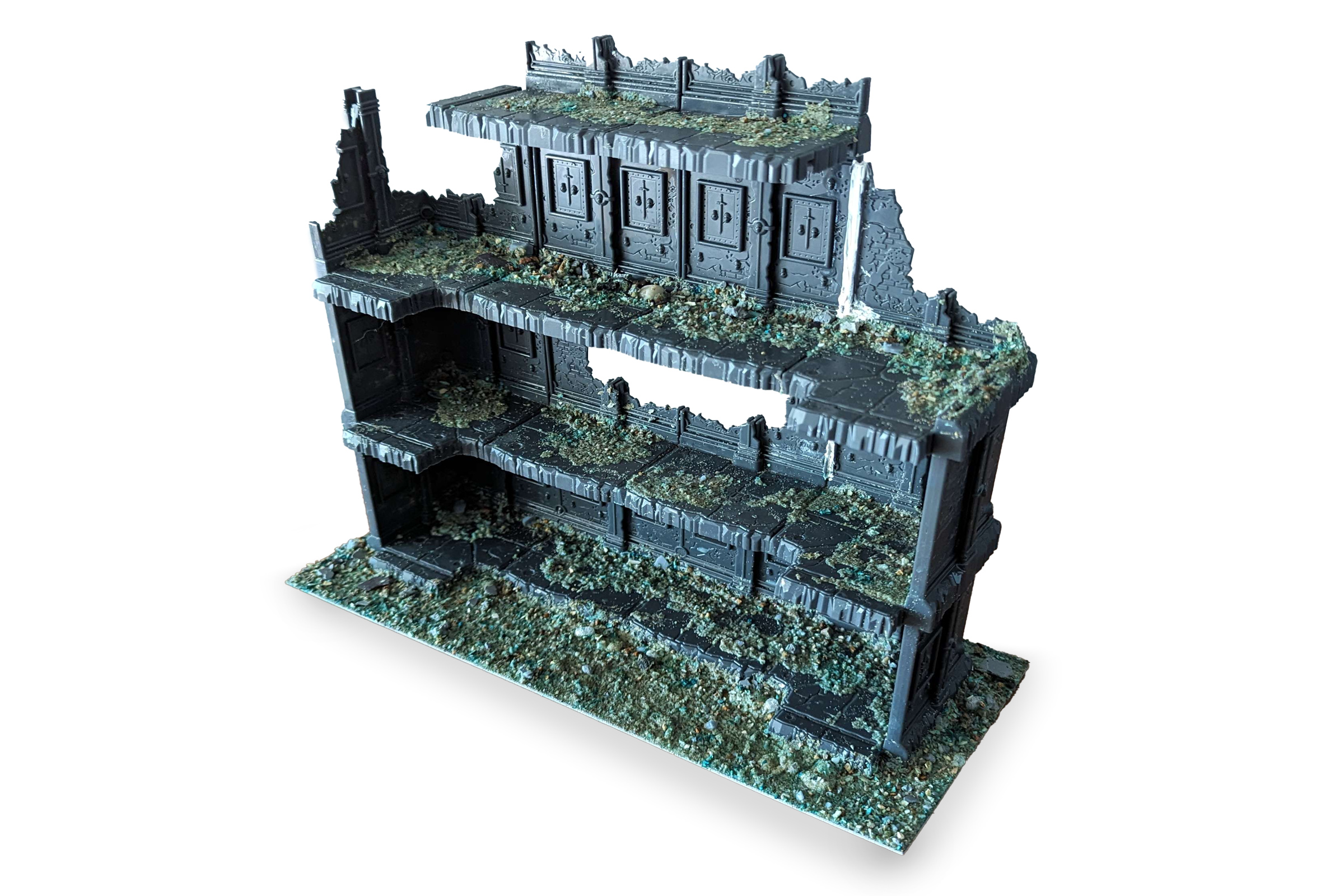 Hit the terrain with a layer of Dullcote to protect from scuffs and scratches, let it cure overnight, and you're done! A grimy, weathered ruin, ready for the battlefield!