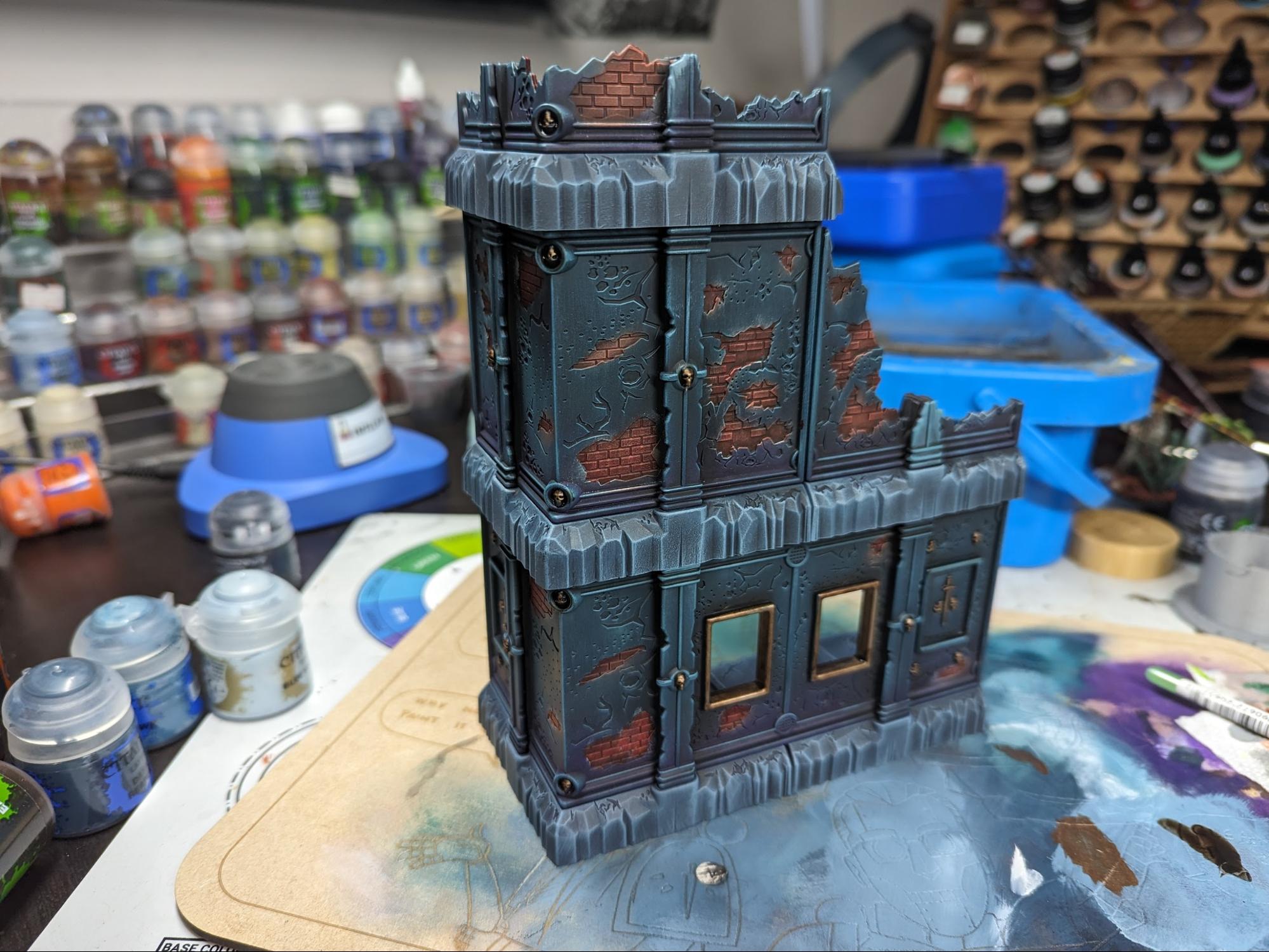 I wanted to go with a kind of exotic stone facade over regular brick for this ruin, kind of in the style that I see a lot of boarding action boards done in. I think I could have pushed the highlights a bit further, but at the same time I don’t want my terrain’s paintjob making it hard to see the actual models.