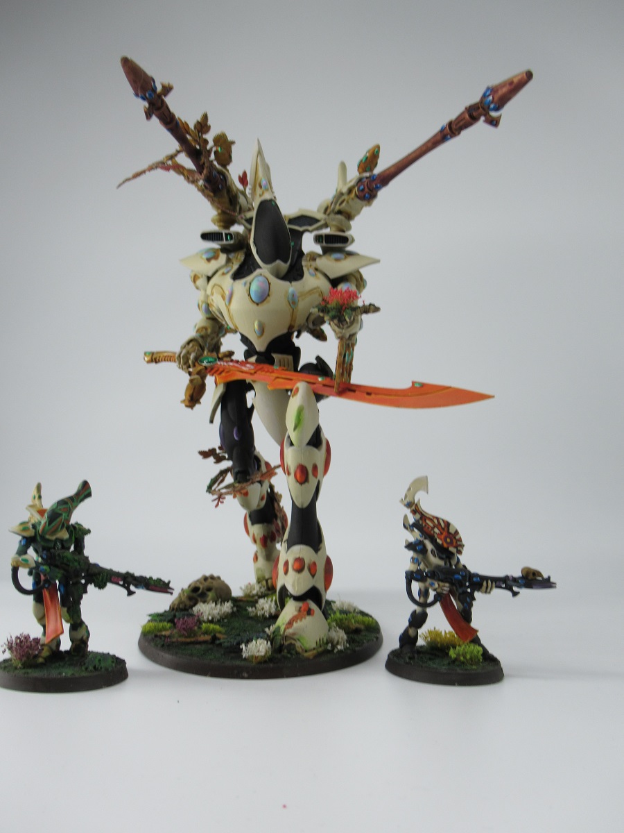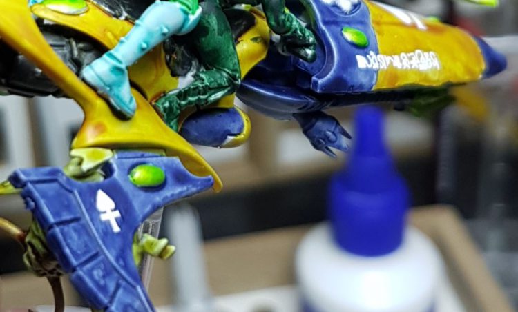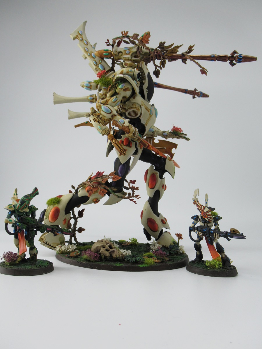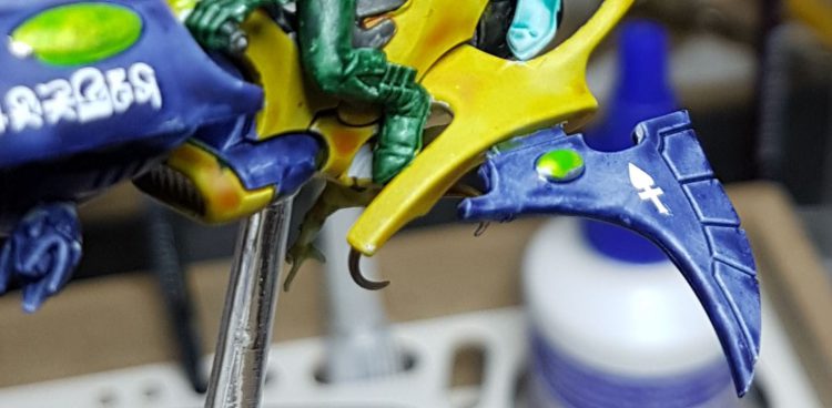 Below is a rough Harlequin Skyweaver I painted up for a friends birthday with a very happy little nurgling hanging on for dear life.