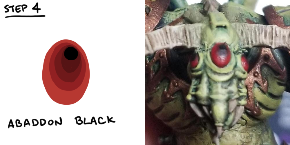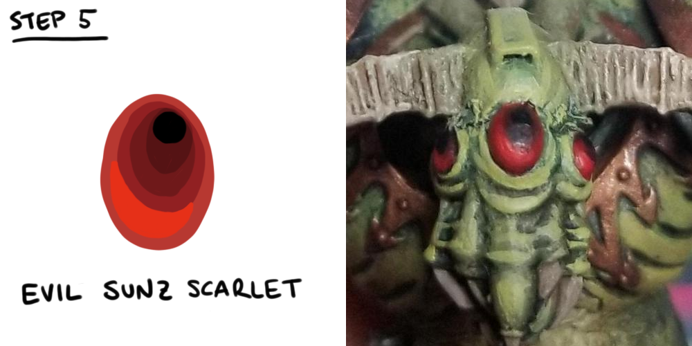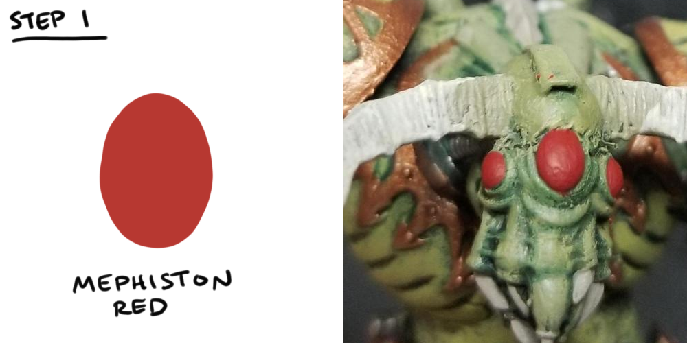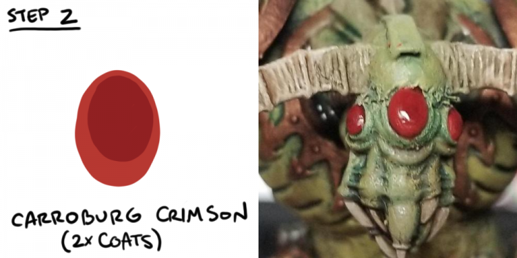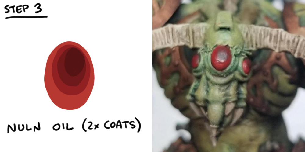 You can use any color but here' I'm using red. If you use a blue or a green or whatever, the key is to shade progressively to black using Shades and Nuln Oil.