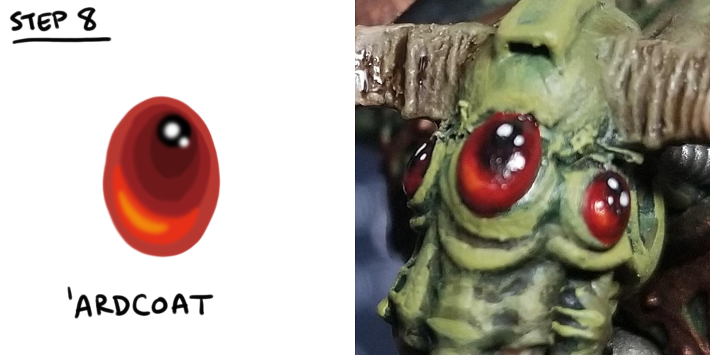 Here we're doing our lower highlight. I use a little bit of bright orange on top of the Evil Sunz Scarlet to really make this pop. It'll show up later when we add 'Ardcoat.