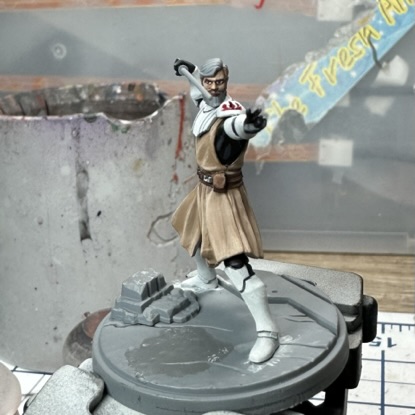 Hello there! Welcome to our continuing Shatterpoint coverage. In this week's HTPE, I'm going to show you how I painted up my General Obi-Wan Kenobi, including my first real stab at object-source lighting.