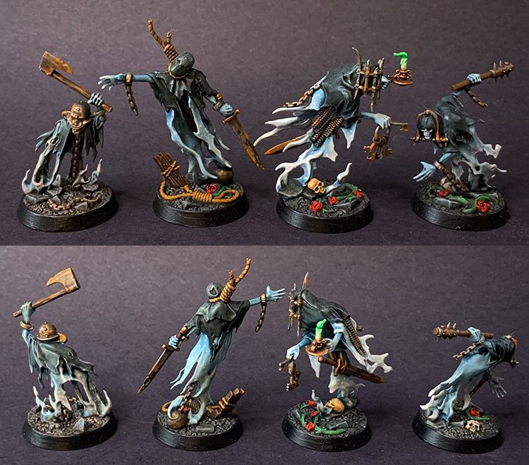 When it comes to ghosts you really can't go wrong with the "classic" look. I decided I wanted their incorporeal form to be similar to the official paint scheme, with just a few tweaks to personalize it. Thankfully, a couple paints and techniques make this scheme quick and easy with pretty solid results.