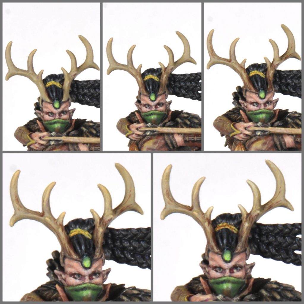 Bottom right: Vallejo Model Color Ice Yellow at the tips of antler points and bumps.