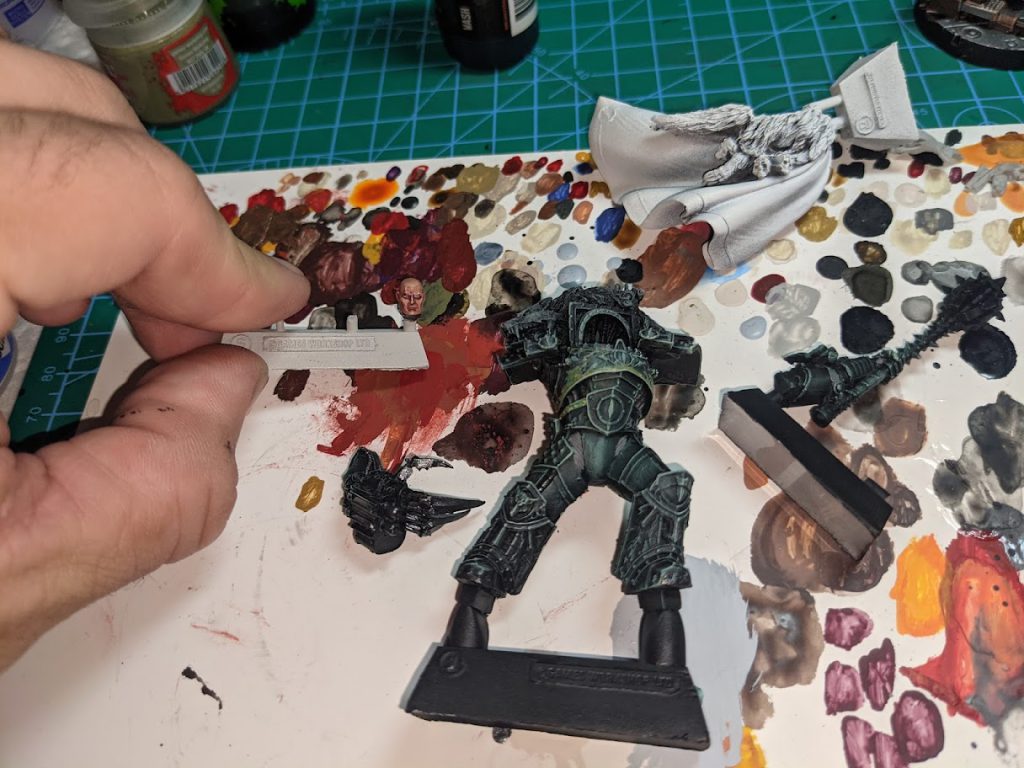 The Talon of Horus was painted alongside the rest of the armor, though the claws were painted silver. I then added Blood for the Blood God on the ends of each talon, to represent him mortally wounding The Emperor and the Imperium in his lust for power.