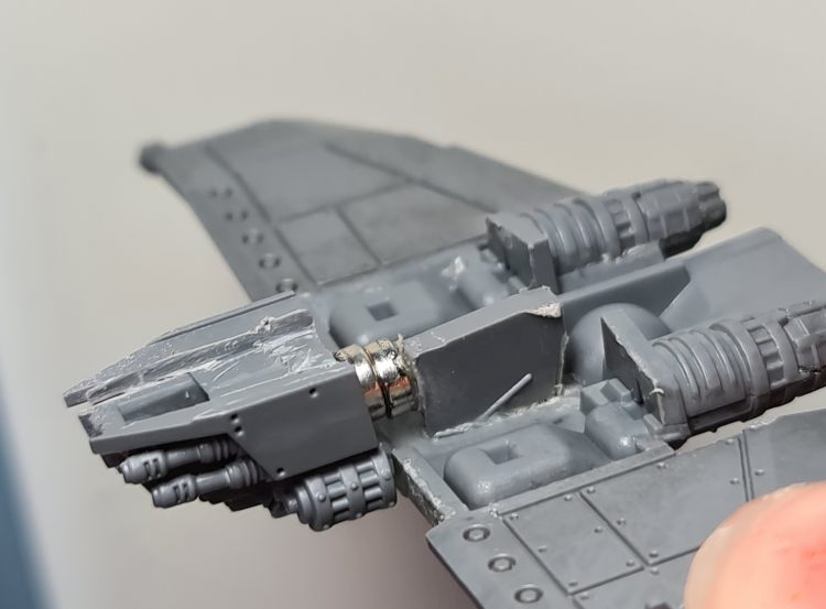 Once that was done, I painted the engines and manifolds black, with a quick grey edge highlight. I can't remember for sure but I think it was