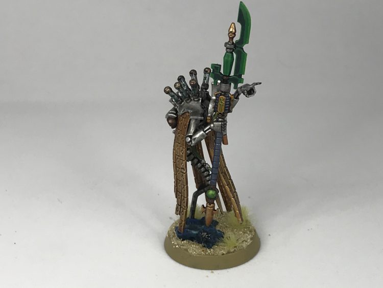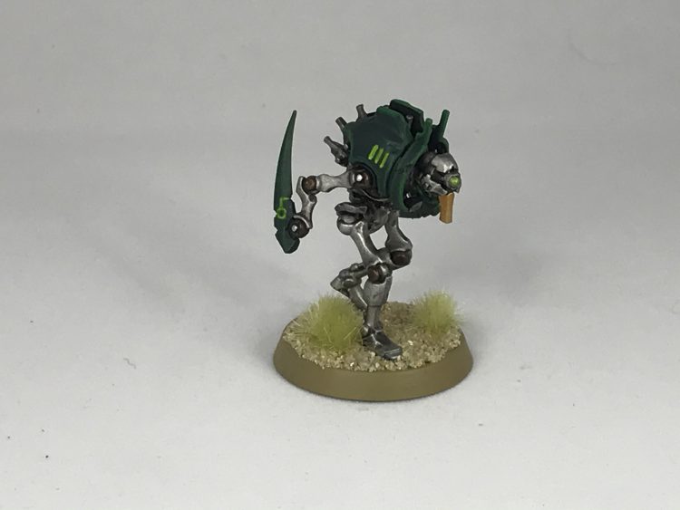 The only new thing here is the eyes - these get a coat of Stormhost Silver followed by a thinned coat of Iyanden Yellow Contrast followed by an even more thinned coat of Ork Flesh Contrast, which gives a nice vibrant glowing green. This gets re-used on the glowing green cables on the next few models.