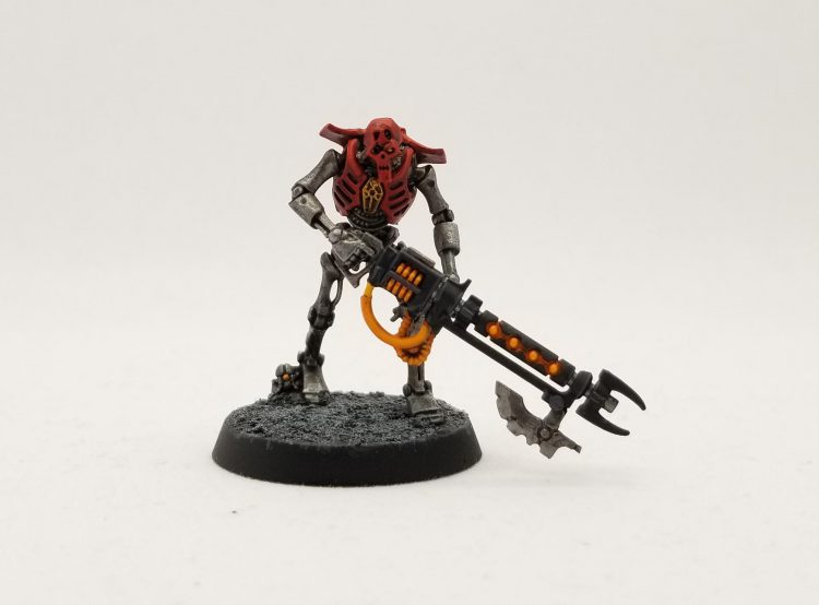The other major difference between my characters and my rank-and-file jerks is that my character Necrons have orange hyperphase weapons. These took a bit of trial-and-error to figure out before I got a process for doing them that wasn't particularly hateful.