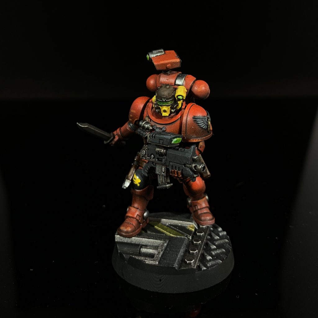 When thinking about a basing scheme for my Blood Angels, I wanted something a little more exciting than my usual basing paste, or gravel mix. To help “sell” the overall composition I also wanted everything on the base to be painted, unpainted stones and tufts can sometimes be jarring when based with miniatures. I’ll often back crowdfunding projects without having a clear idea of what I might use the subsequent models for, and that’s how I came to back Txarli Factory and Goonmaster Games. There was plenty of inspiration to be had and I eventually settled on the idea of the Blood Angels defending a Forge planet. A desperate fight in the sweltering confines of factories, choked artificial light bouncing off metal halls providing a backdrop.