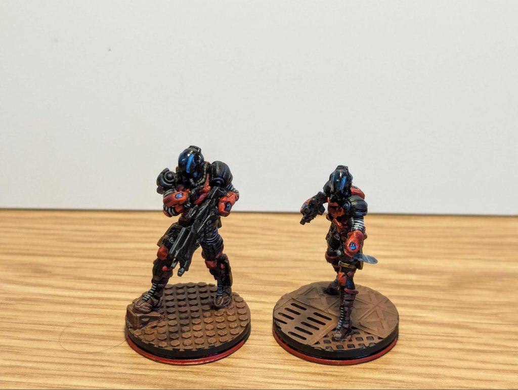 This scheme is meant to look like fully oxidised metal. Science bods, don’t come at me with whether that’s a real thing or not. I just thought it was a way to do something that read as metal, without actually using metallic paints, which I try to avoid for Infinity, or the effort required for NMM bases.