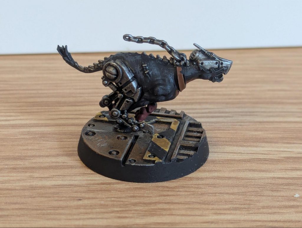 Necromunda Orlock Cyber-Mastiff, on a GW plastic Necromunda base. Credit: Genghis Cohen