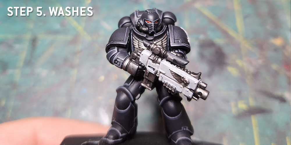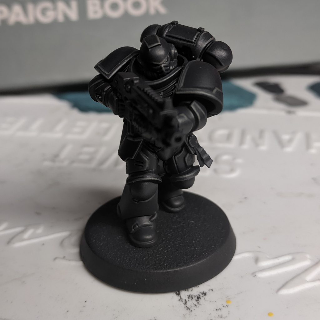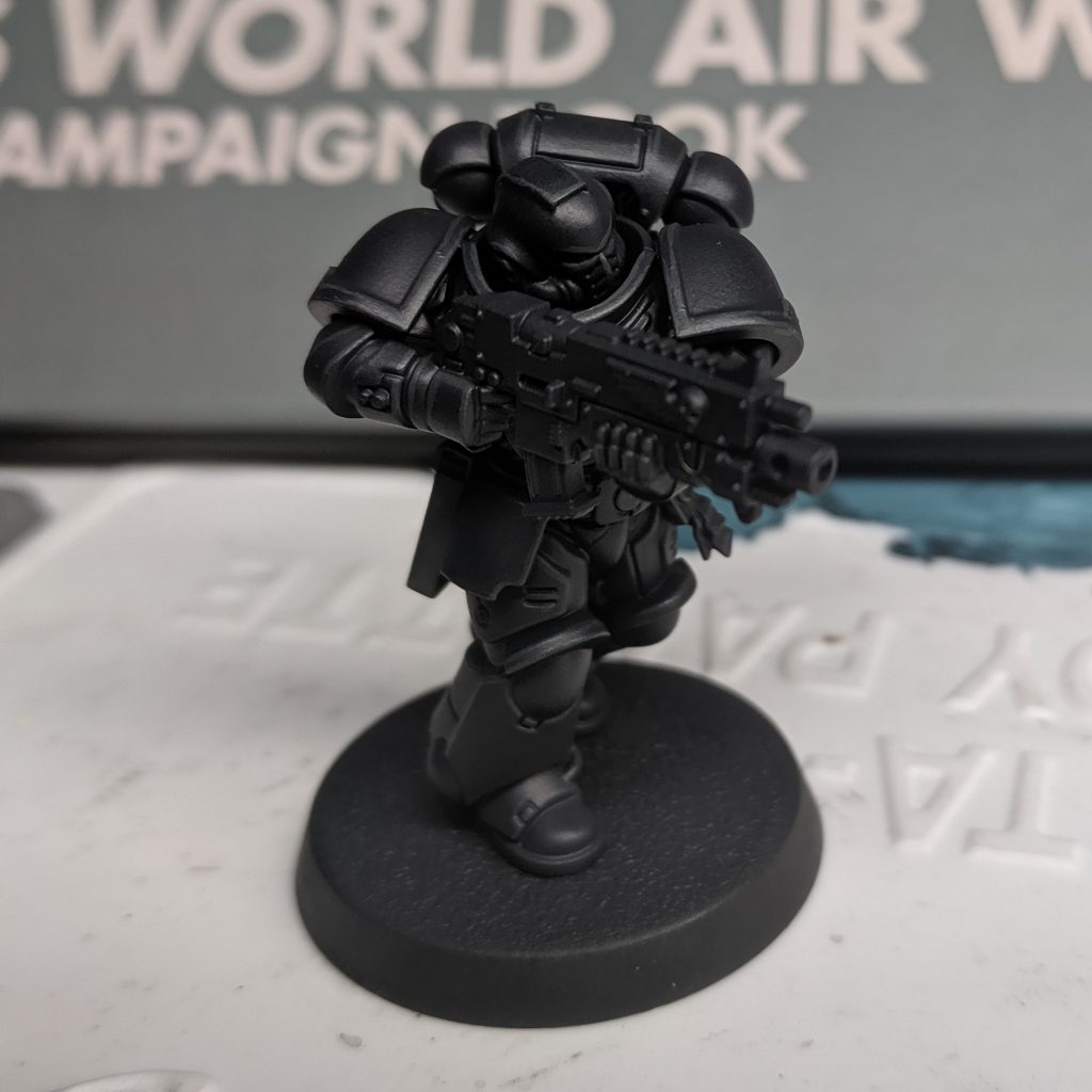 Corvus Black, airbrushed on to leave a little bit of pure black in the recesses