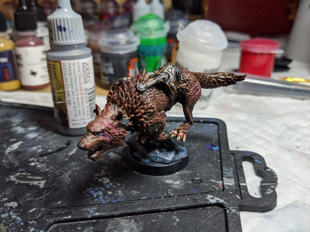 I then primed the second wolf with a coat of Grey Seer alongside all of Logan's various grey-seered bits.