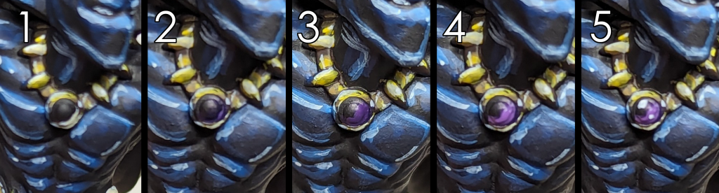 Paint an even thinner crescent inside the previous layer with Genestealer Purple.