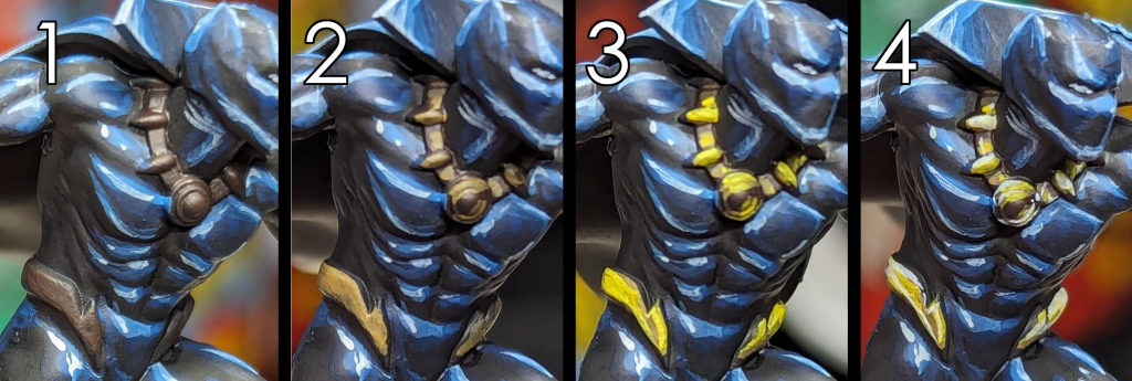 Lay down the initial colors for your gold with XV-88, highlighting where the light would reflect.