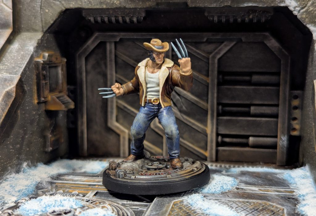 Alright, let's move on to our man Logan. This version of Logan trades in the yellow spandex for his trademark leather jacket and jeans as well and can sport either a cowboy hat or bare head. I went with the hat, since I feel it makes the miniature more interesting.