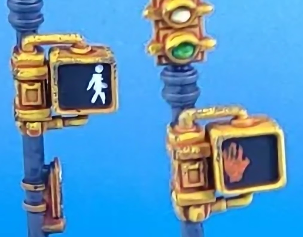 Marvel Crisis Protocol NYC Terrain Pack Traffic Lights and Lampposts painted by Crab-stuffed Mushrooms