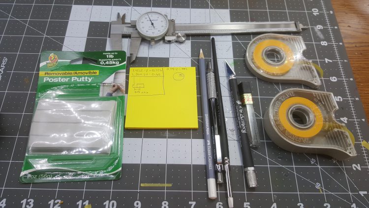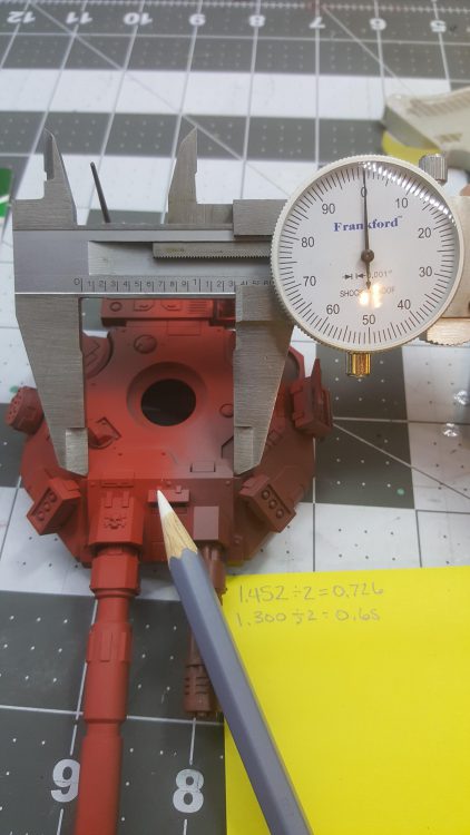 After determining the exact center of the model, small marks are placed to help guide the placement of the masking tape.