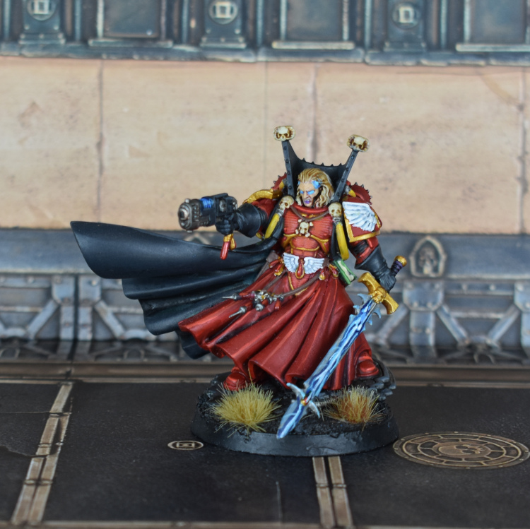 I don't collect Blood Angels, but Mephiston is such an iconic miniature. He's frequently described as "sinister" in the background and I wanted the mini to reflect it: