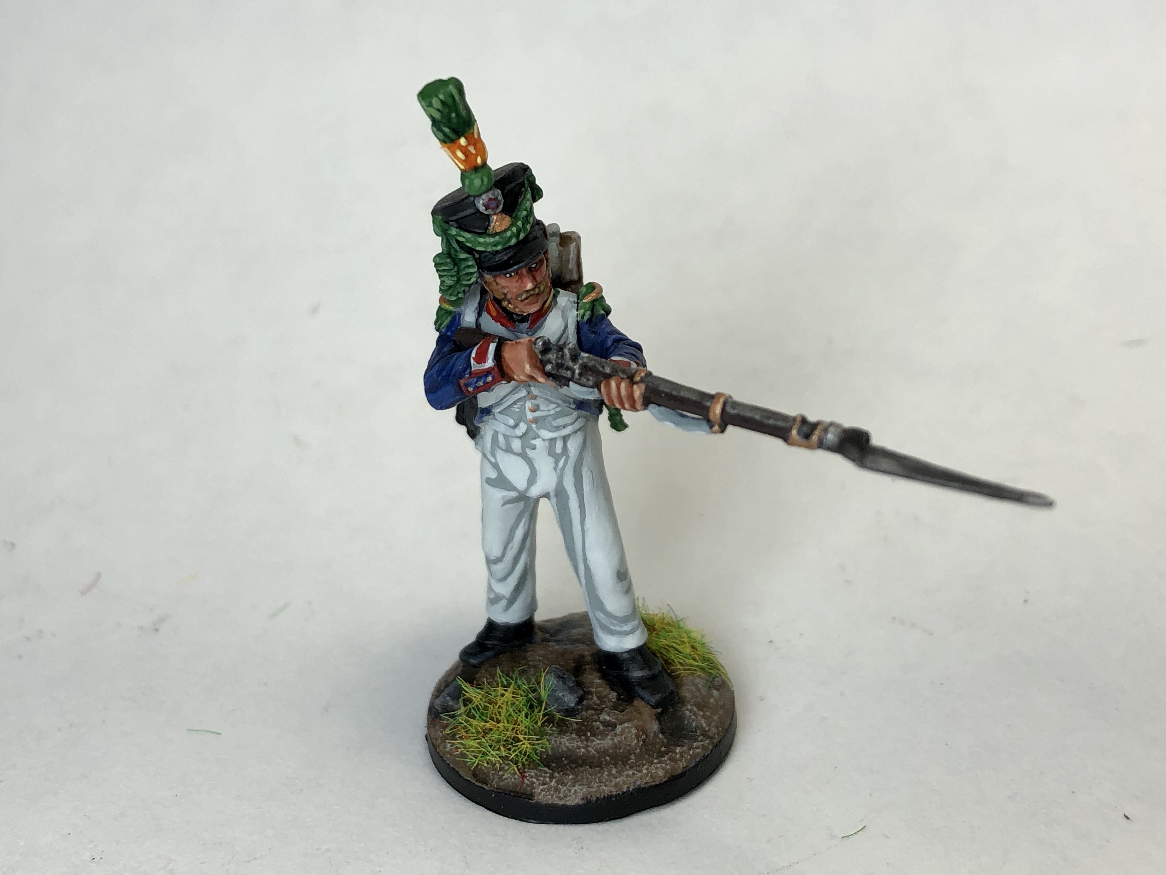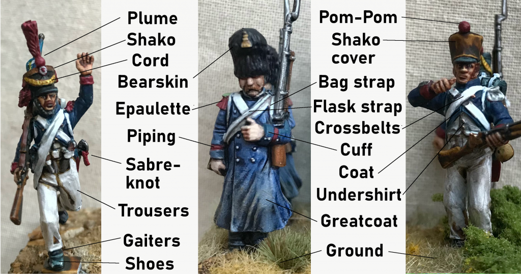 If you're batch painting a large batallion, you could finish here and en masse I'd be happy with the result. If you want to go one step further, there's some smaller highlights and details to do that will make your French really stand out. For the Metal, Red and Pom-Pom highlights, just apply a little paint to the raised areas.