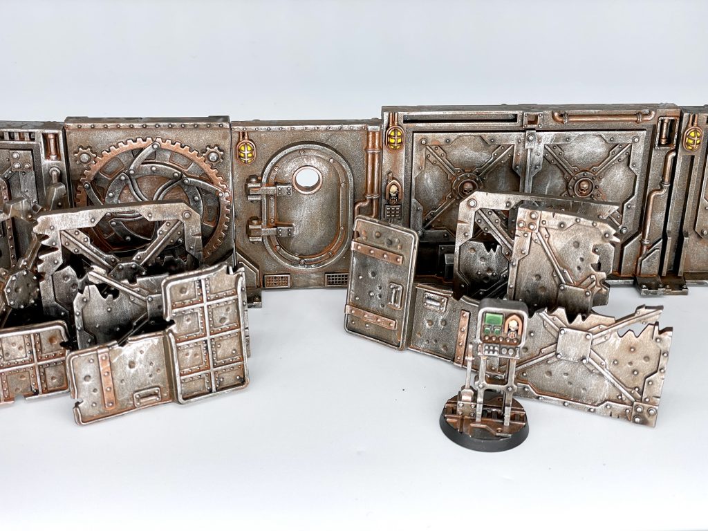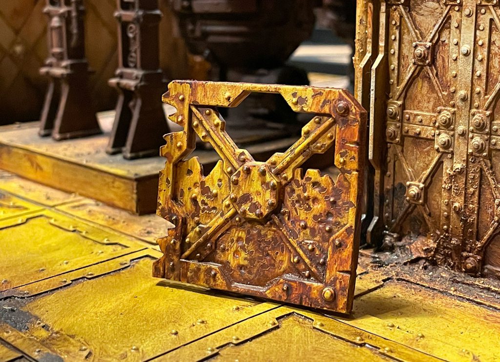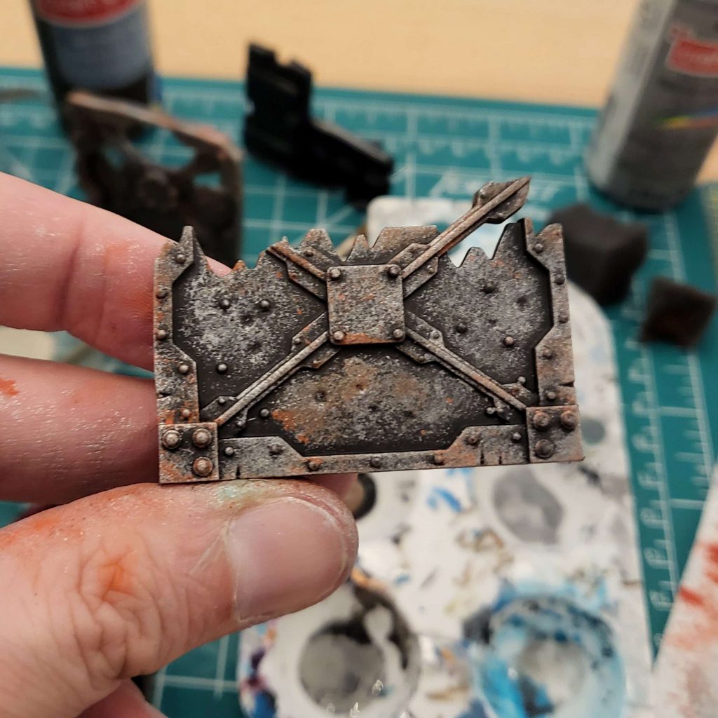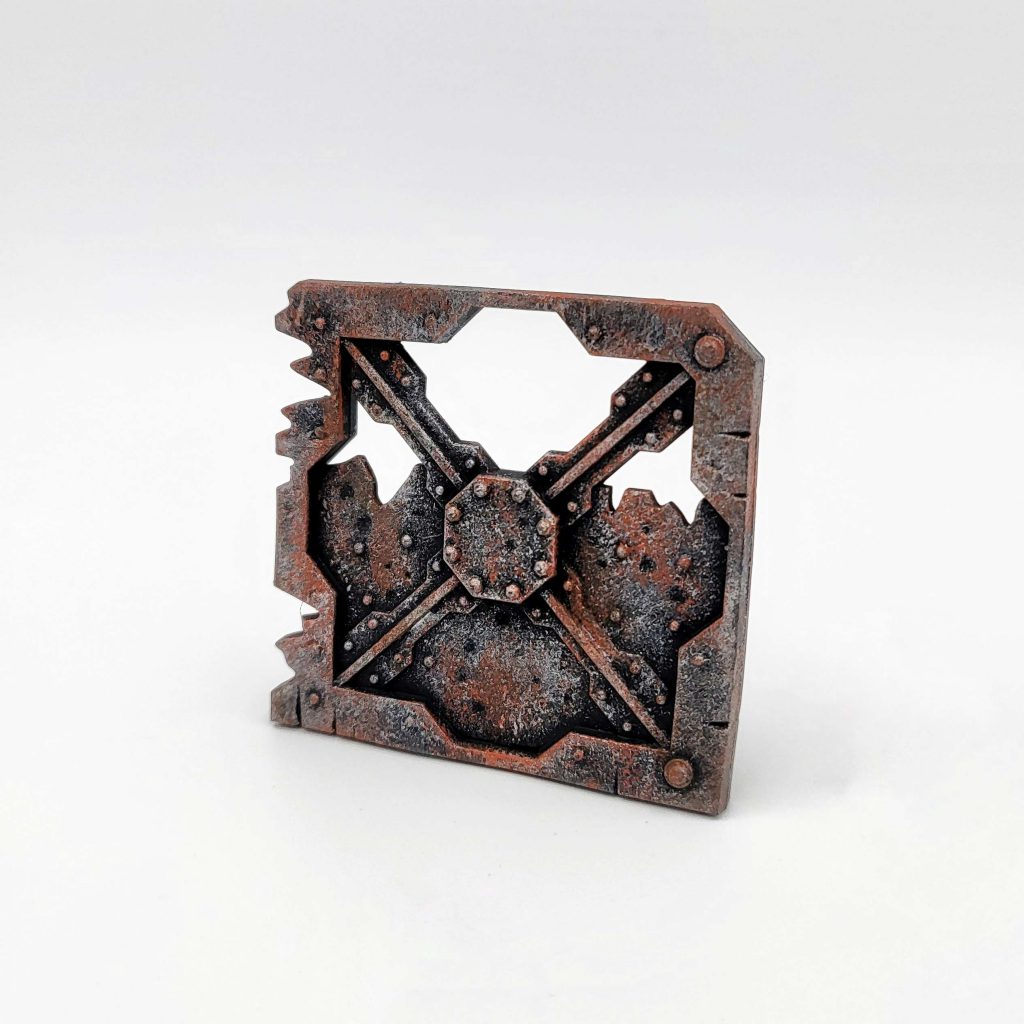 Both of these methods use the same end process of oil washes to achieve their rusted, grimy finish. More time is spent in spraying and prep than in sit-at-your desk painting time. Like all my terrain, it’s a low effort, high reward effect.