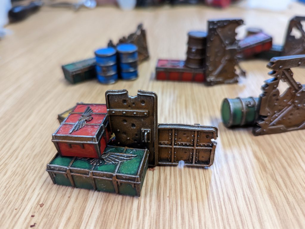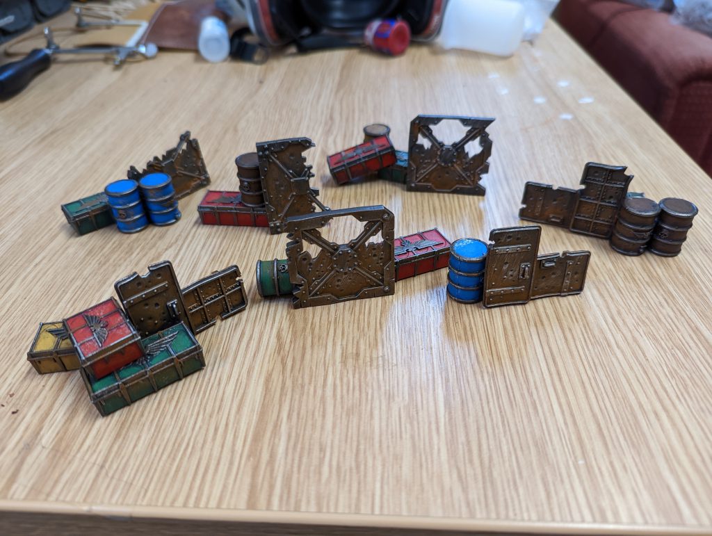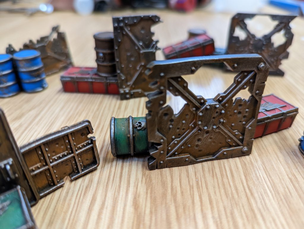 Step 2: paint the crates and barrels the colour of your choice, filling in the spaces between any framework, which will stay metallic. This is the only time consuming bit.
