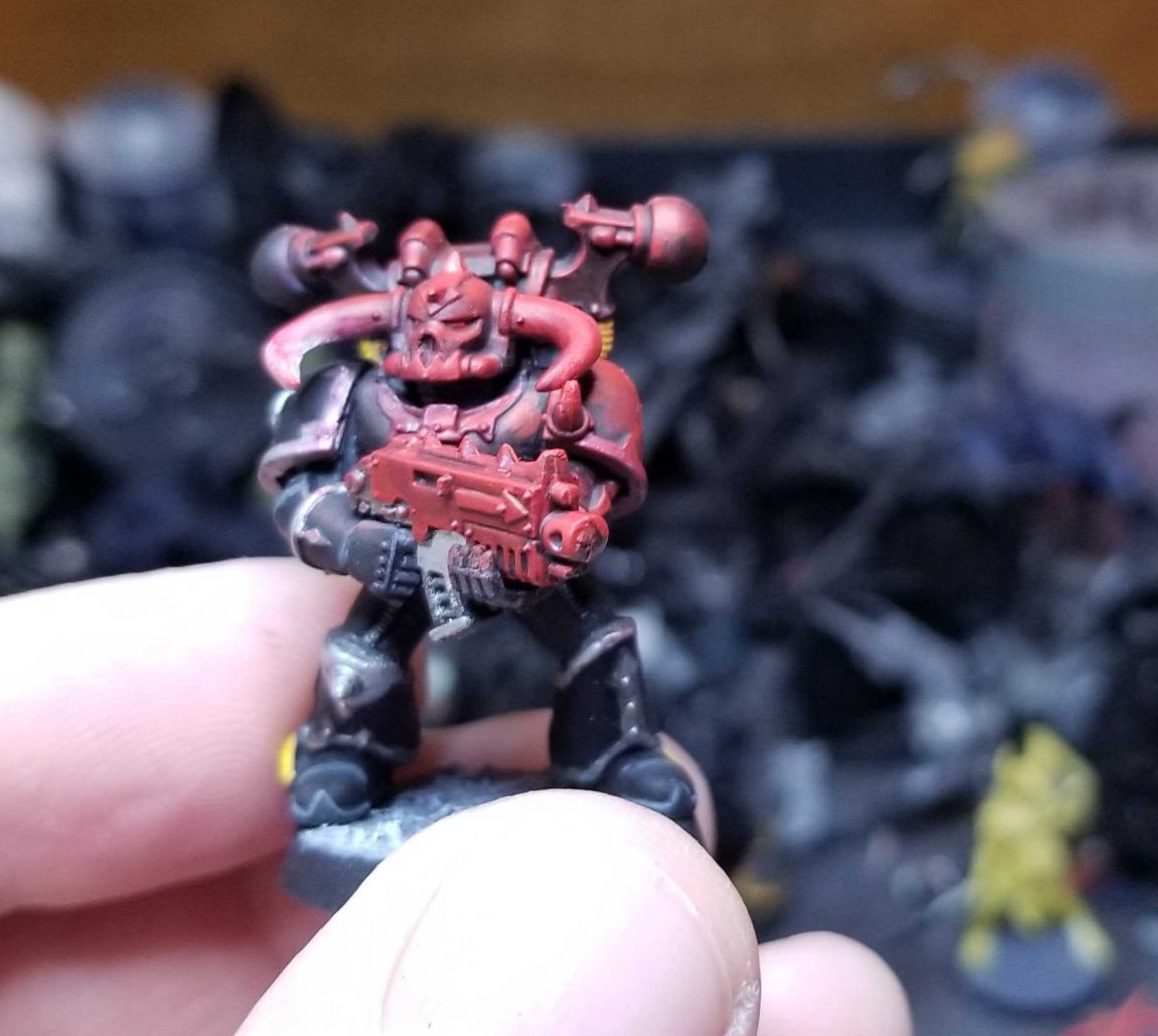 First things first, go and find a suitable candidate, or paint one and come back here to stage 1. I chose a Plague Marine I painted a while ago, because he has a plasma gun and they get real hot apparently.