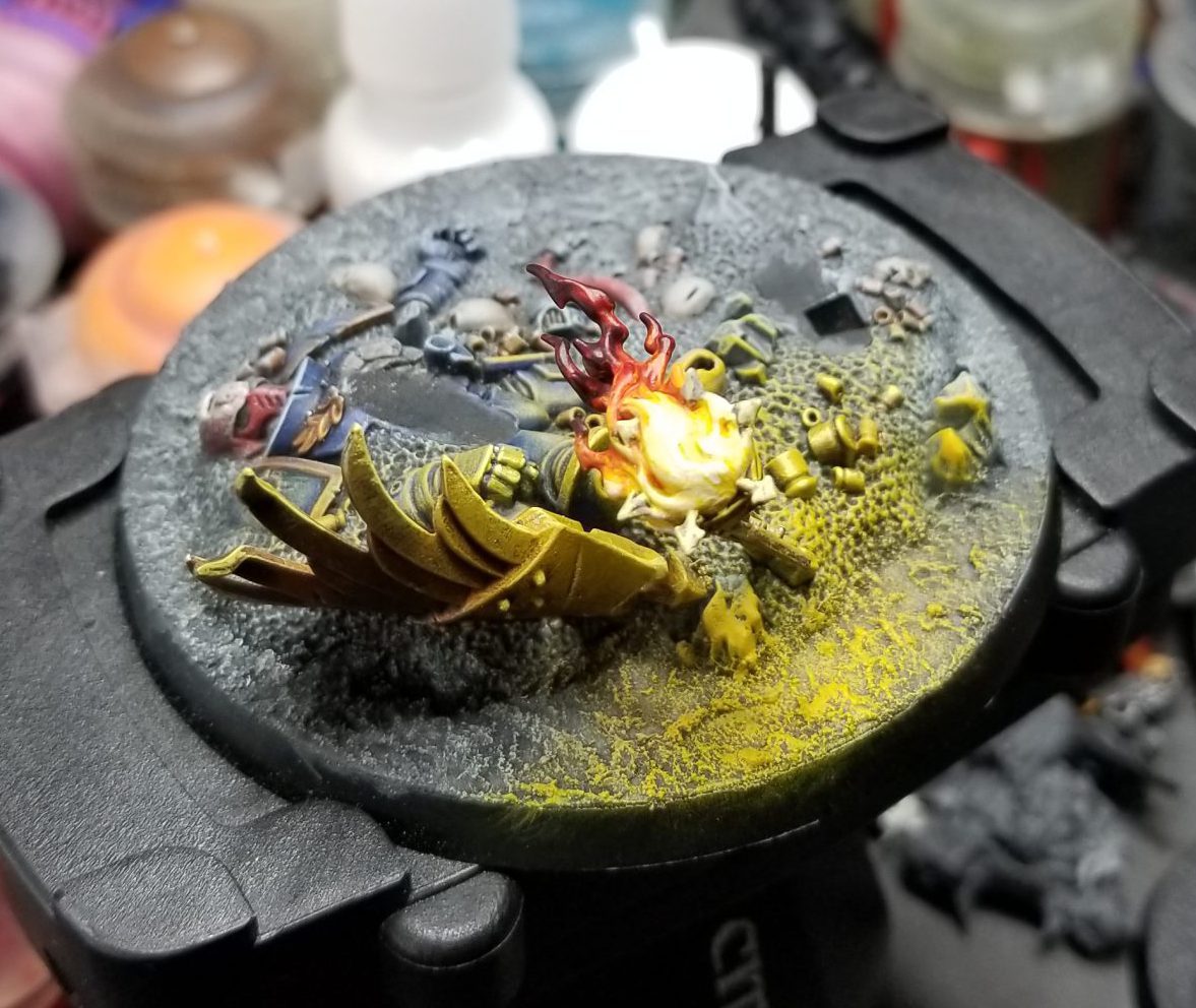 - Wash the glow area in thinned Mournfang Brown