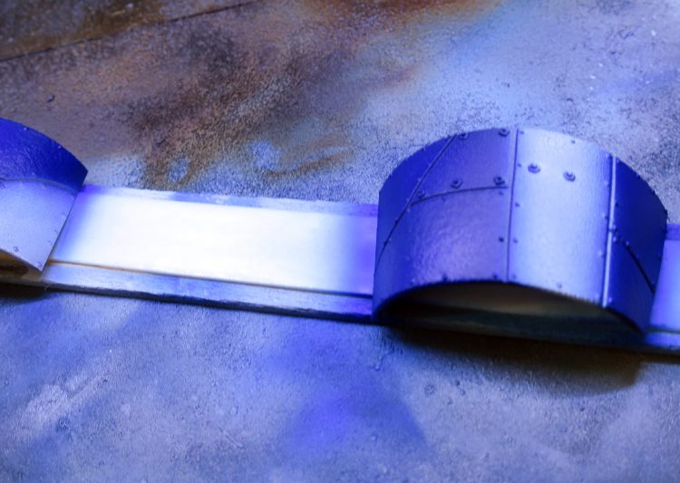 This is the part you’ve been waiting for. All the work leads up to this step. We now take the armor plates and run them under water, then use a variety of tools to physically remove the outer layer of paint. Be careful around the white, as it is usually just one layer, and can easily flake off.