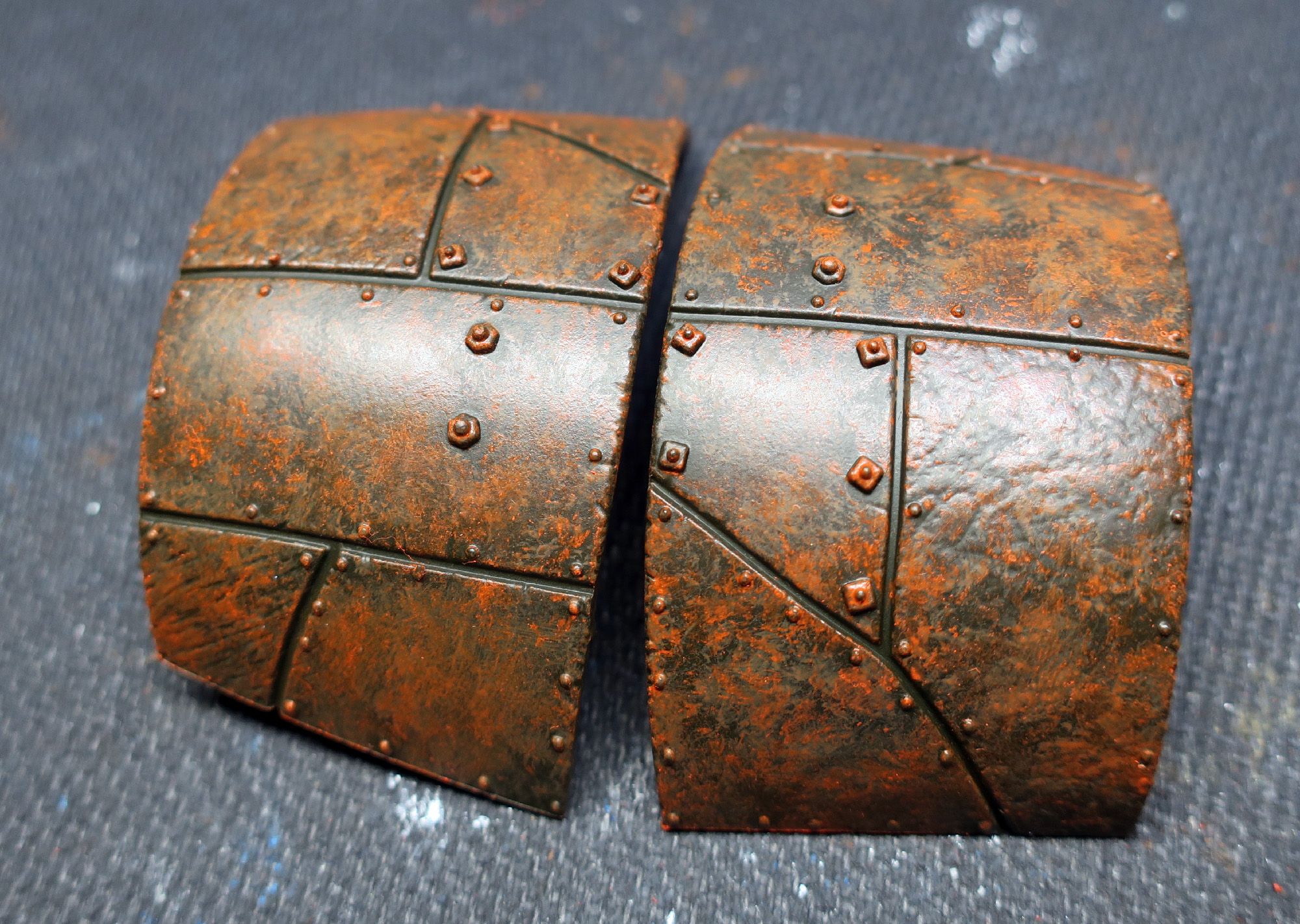 Base coat with mix of Boltgun Metal, Solar Macharius Orange, and black to create a muted, rusty color.