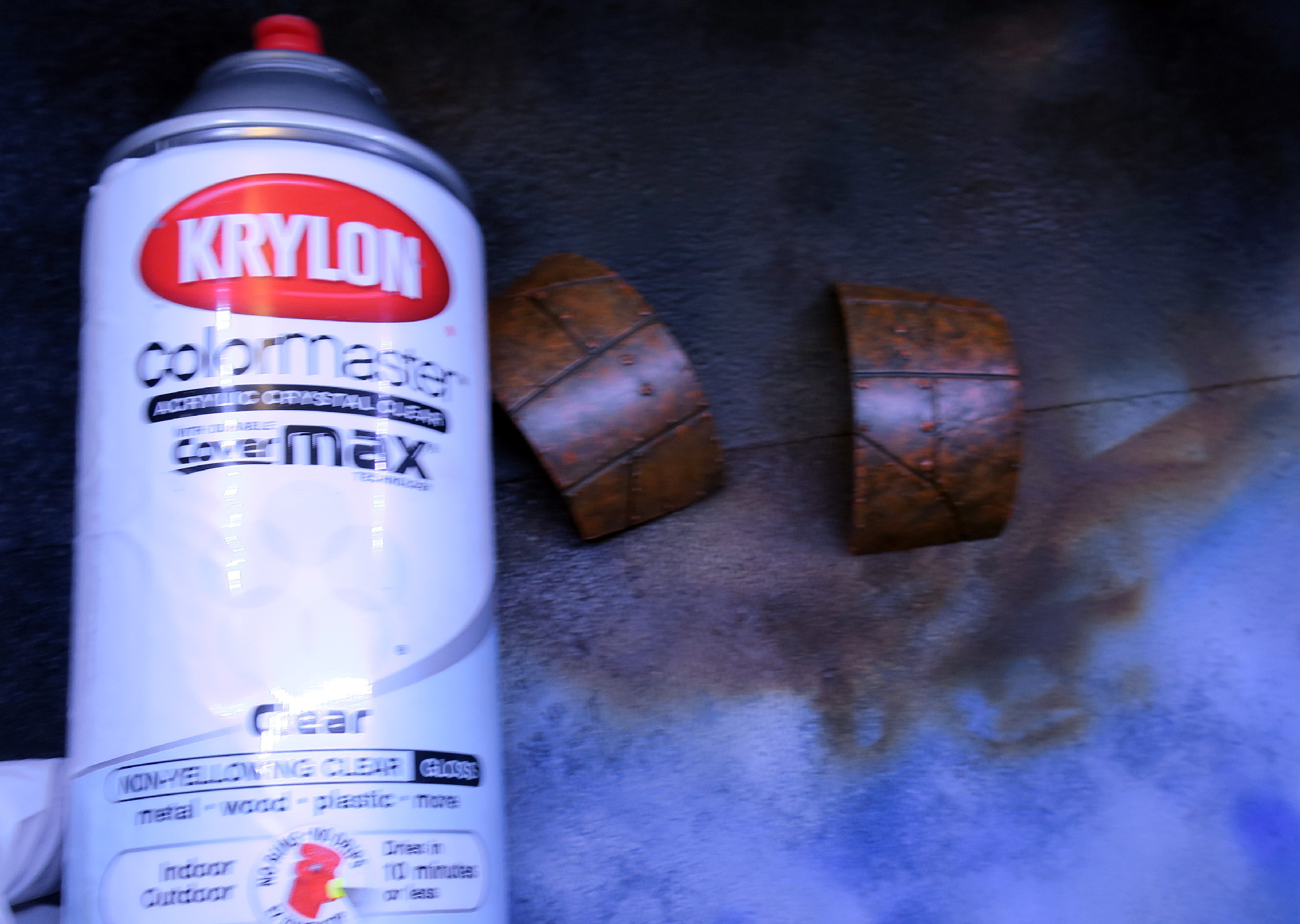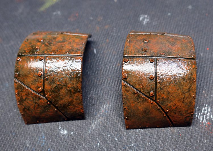 Now we are going to varnish the armor plates. I like to use a gloss varnish from a rattle can for this, because once again, we are going for durability over quality. The varnish will protect the rust layers (that you spent so long building up) from the scratching and ripping we’ll do in the next steps. I let the varnished models sit over night and save the chipping steps for when I have a lot of time. (as generally I do all the armor on a unit or model at once).
