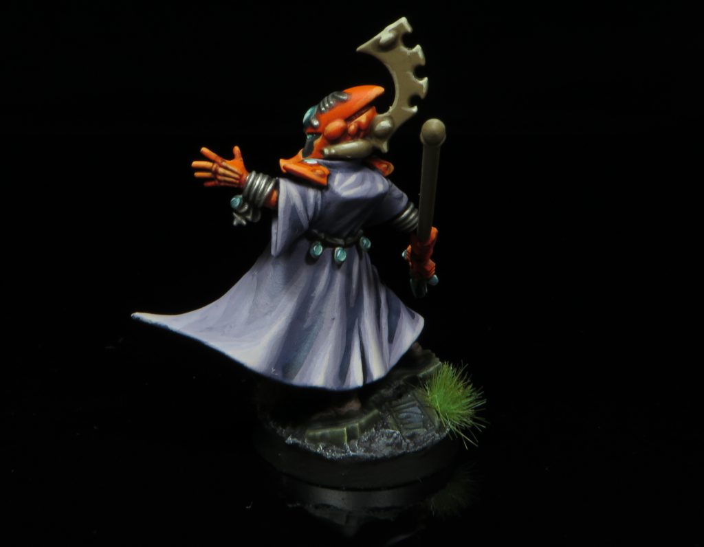 The Craftworlders of Lugganath want to escape life in realspace. They see it as a dead end, and are deeply invested in escaping to the Webway for a more permanent existence there (ousting the Drukhari in the process). To that end, they've been fostering a strong relationship with the Harlequins, and working on a long-term plan to escape into the webway. They're seen by most other Asuryani as corsairs and pirates - basically one step above the Drukhari. Rockfish's Eldar aren't technically Lugganath - at least, that wasn't the original intent - but Rockfish's models are essentially ringers for the craftworld thanks to the bright orange paint scheme he's chosen and so he kind of ended up with Lugganath by accident.