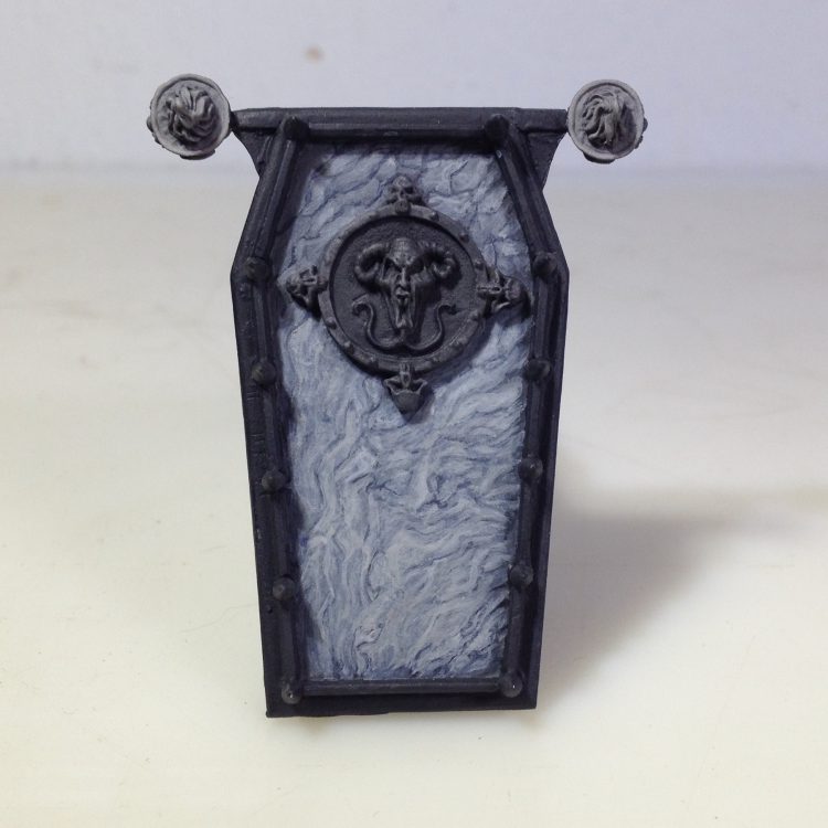 The example I'm using here is the top of the original Vampire Counts black coach. It's a nice big flat piece begging for some added interest. Thematically I wanted the materials to be wrought iron and marble to give it a victorian cemetery vibe. The ratios of paint I use here are rough estimates, and my process is largely done by feel. Marble has a wide variety of textures and hues, I'm building up a densely textured surface, however for a lighter, smoother marble you could do the final step over a light grey base coat and selectively apply other steps as you see fit.