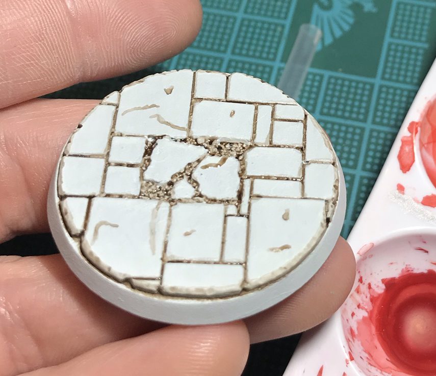 To begin with, this piece was primed with a mix of Stylnylrez Ebon Flesh, and white, hit with a top down angled burst of pure white. I wouldn't say this is necessary, but a solid grey or white prime would be good. Black would be too dark to start, unless you were doing black marble, in which case you could just inverse the process I have here.