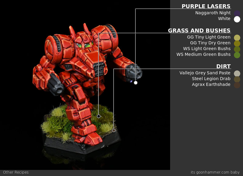 I’ve been basing all my mechs and tanks in basically the same basic pattern - paste, base coat, wash, no drybrush. It is pretty basic, and you can do stuff like water or more fancy effects, but I find that it works out pretty great once you toss the Gamers Grass tufts and Woodland Scenics bushes on, and it is quick to pump out on even a dozen models.